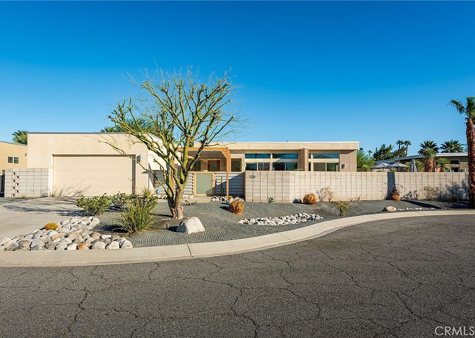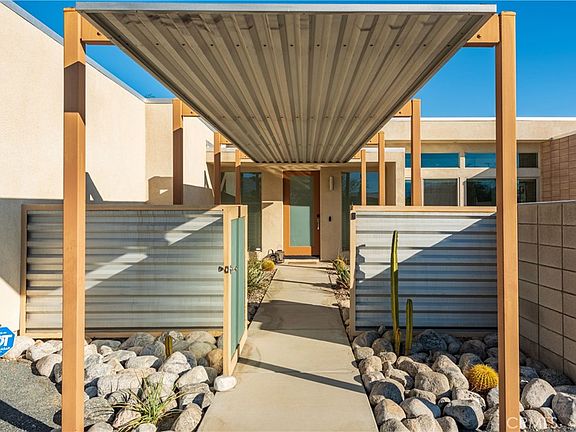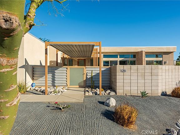 Nestled in Palm Springs’ scenic Murano development, this modern home, built in 2014, blends mid-century architectural charm with today’s energy-efficient amenities.