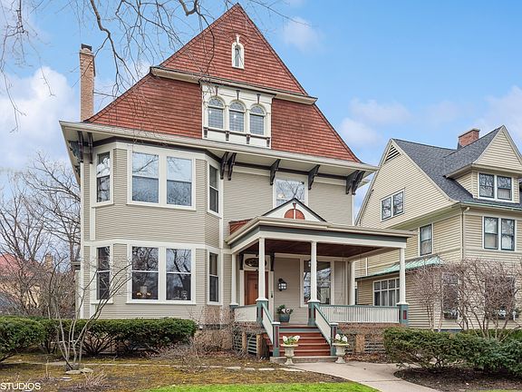 Splendid classic Evanston landmark 1897 Queen Anne Victorian home on one of the most desired blocks in southeast Evanston. This impressive home features 6 bedrooms, 3.1 bathrooms on three full floors of living. The large footprint allows for considerate room sizes, high ceilings, an abundance of natural light, striking woodwork, original stained glass, and ample storage. Tremendous first-floor living room with granite-encased fireplace & original built-ins, large dining room w/ fireplace, private office, open updated kitchen w/ attached family room & laundry room, powder room, and relaxing screened-in back porch. The second floor features a primary suite w/ a custom closet and updated bathroom, three additional bedrooms, sunroom/office, & full bathroom. The third floor features a guest bedroom, full bathroom, & rec room/6th bedroom. Large basement with extensive storage including a large cedar closet. Private backyard w/ 2-car detached garage. Perfect location on a tree-lined street 2 blocks from Lake Michigan, close to Dempster St retail/"El", Main St retail, Metra, & "El", schools, and Sheridan Rd for a fast commute to Chicago. Recent improvements include: Roof, Gutters, Boiler, AC, Chimneys rebuilt, hot water heaters, whole exterior house painted. Showings Saturday 3/25 for one day, then it will be live next week with showings starting 3/31.