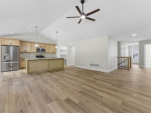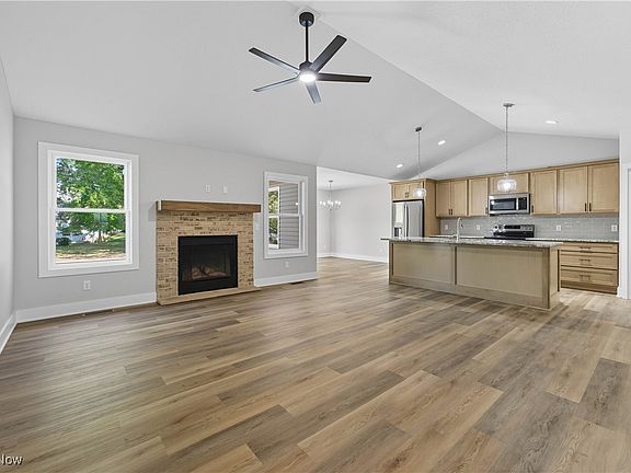 Built by award-winning Classic Custom Homes, this brand new 3-bedroom, 2-bath ranch offers over 1,700 sq ft of thoughtfully designed living space in a prime North Canton location. The open-concept layout features a smart, easy flow with cathedral ceilings in the great room, a cozy gas fireplace, and durable LVP flooring throughout the main living areas. The custom kitchen is a true showstopper, complete with soft-close cabinetry, granite countertops, tiled backsplash, stainless steel appliances, a walk-in pantry, and an oversized center island perfect for entertaining. A spacious dining area offers plenty of room for gatherings. The primary suite includes two walk-in closets and a spa-inspired en suite bath with dual sinks and a walk-in shower. The full unfinished basement is plumbed for a future bathroom and offers excellent potential for added living space. Outside, enjoy a flat backyard, covered front porch, and back patio. Final grading, seeding, and driveway are all included. This is a rare opportunity to own a new custom-built home in a sought-after location — schedule your tour today!