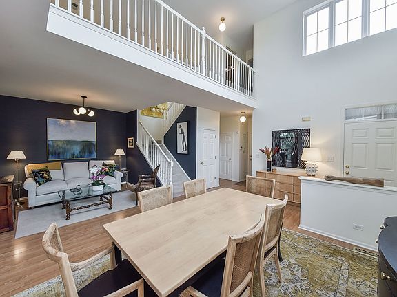 Beautiful End-unit in Eagle's Ridge of Bartlett ~ Nicely updated and flexible Aspen model in wonderful condition ~ Soaring 2-story entry and brilliantly Sunlit Living Room ~ Island Kitchen with Quartz countertops is open to Family room with Fireplace and windows overlooking serene greenspace ~ 2nd floor Loft is perfect for reading or napping ~ Vaulted Primary Suite with freshly remodeled Luxury Bath ~ plentiful spaces for displaying your favorite Artwork ~ 10x11 Deck off the kitchen has stairs leading to grassy area ~ Fully Finished English basement has a good amount of Natural Light for 4-Season Tranquility... Comfortable large open space can fit several needs and uses ~ 2-car attached garage ~ Cozy sitting Porch up front for sunny mornings and rainy springs ~ home is just steps to Peregrine Park ~ very well-managed homeowner's association ~ A Quiet Peaceful Home...yet close to everything you need ~ You will Love Living in Eagle's Ridge!