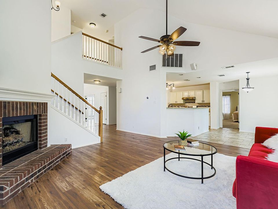 Spacious 4-bedroom, 2.5-bath home featuring a formal dining room, private study with French doors, and a large family room with soaring ceilings. The open floor plan includes a game room and a downstairs primary suite. Enjoy a huge, shaded backyard perfect for relaxing or entertaining. Fresh paint in main areas and the hand-scraped laminate flooring in the dining, study, and family room elevate your home. The chef’s kitchen provides classic white cabinetry, granite countertops, stainless steel appliances, a center island, and a breakfast bar. The primary suite offers dual closets, soaking tub with granite counters and a separate shower. Home is nestled in the heart of neighborhood and literally across the street from the Ada Mae Faubion Elementary School.