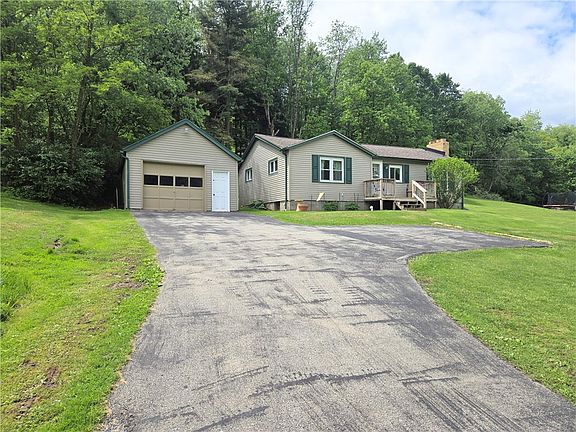 Welcome to one level living on 2 acres in a quiet country setting! With a few updates, this home has wonderful potential! It is currently laid out with a kitchen, living room, and a den, however you could easily transform one of these rooms into a dining room if desired. The bedrooms are split with two on one side of the home and one on the other. The 3rd bedroom is equipped with laundry hook-ups if main floor laundry is preferred. Enjoy the outdoors on the front deck or sitting in the private back yard on the patio or around the fire pit. There is a detached one car garage and a shed is included for extra storage! There is great opportuniy to build equity with some small updates!