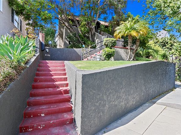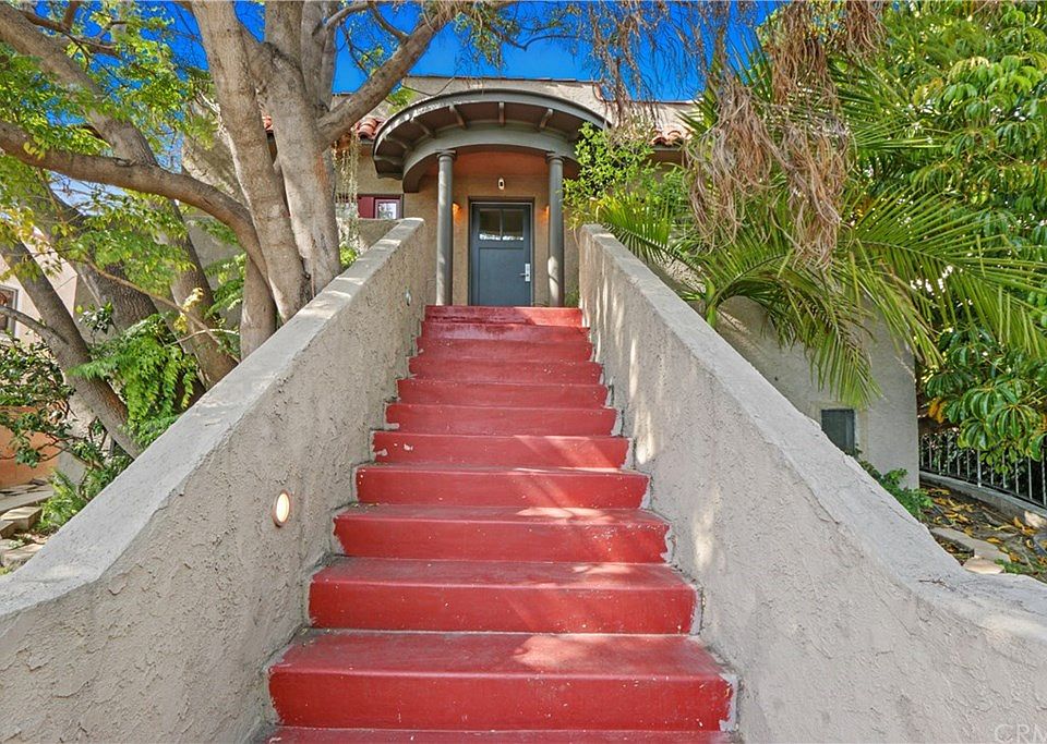 Classic meets contemporary in this 1924 Spanish Revival home! This is a special place! Perched high above the street, this home is private, yet inviting at the same time! The spacious porch is the perfect spot to enjoy the lush greenery that surrounds you. The floor plan is wide open, with high ceilings and original hardwood floors throughout the space. There are 3 bedrooms, although one is currently used as an office/den with custom built-ins and double french doors. The kitchen is a chef's delight with sleek custom floor-to-ceiling cabinetry, quartz counters, and high-end appliances including a Miele down-draft cooktop, and Liebherr built-in refrigerator. The dining room is large enough to entertain family and friends and features a built-in bar area. Off the dining room is a charming balcony to sit and enjoy your morning latte. The master suite offers a walk-in closet with built-ins and an amazing en-suite bathroom with skylight, custom cabinetry, high-end fixtures and an a sleek and classic walk-in shower. The main bathroom is amazing with clean lines and a deep soaking tub. The backyard is a private oasis, and the perfect spot to enjoy the balmy nights and summer barbecues! A 2 car garage with alley access and a 2 car driveway makes allows for access to the house with no stairs! This home has upgrades galore with LED recessed lighting, 200 amp electric panel, solar panels (leased), tankless water heater, dual paned windows and doors, forced air heat, and so much more!