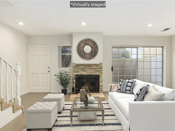 Welcome to Torrance Park South....a secure/gated community which gleams with pride of ownership! This super clean well appointed complex surrounds a gleaming pool and spa along with a kids play area. The Town Home itself is an END unit with a flood of natural light flowing inside this Traditional floor plan unit with all living space downstairs and all 3 bedrooms on the top level. The exhibition kitchen has been tastefully remodeled with granite counter tops, Stainless Steel appliances and freshly painted cabinets. Newer ceramic tile floors downstairs with a powder room and attached 2 car garage. The living room is adorned by a cozy mosaic stone fireplace. Don't miss the private patio off of the living space perfectly suited for outdoor living and grilling. Air Conditioning has been recently added. Upstairs you will find all 3 bedrooms, including your Primary Suite with private balcony and double entry Walk In Closet with attached bathroom w/double sinks. Recently fully painted interior and great quiet community to get in for a great price....get in prior to the Holidays!