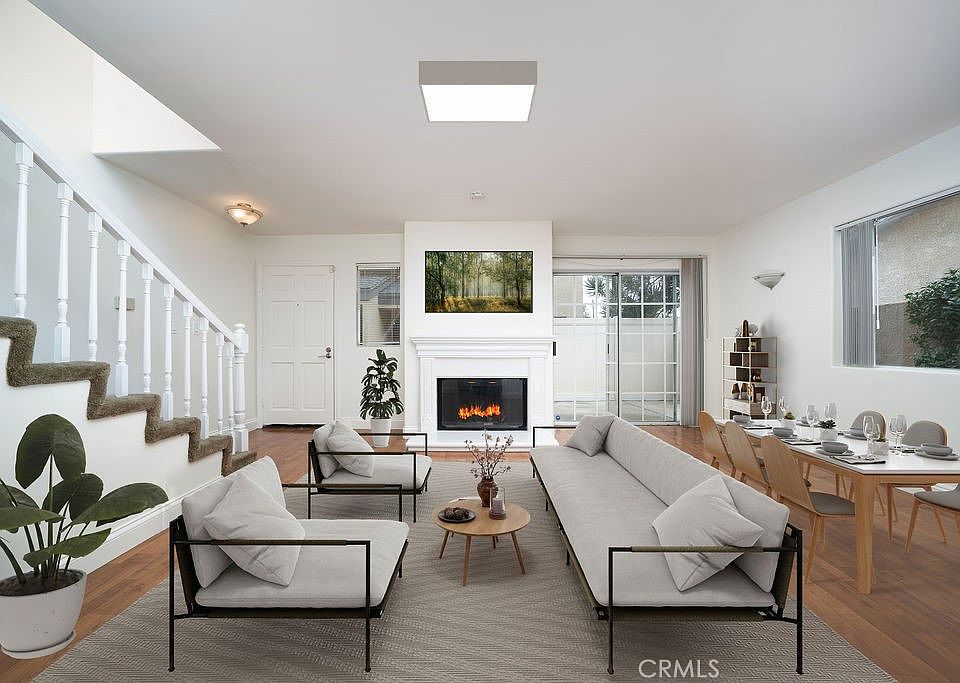 Only half a mile from Old Towne Torrance is a hidden gem. Tucked in a gated residential neighborhood in a 36 unit complex. This condo is 1,210sq. ft. and has 3 bedrooms, 2.5 bathrooms with tubs, two-story with skylights upstairs that shines natural light. Primary bedroom has an ensuite bathroom and a large walk-in closet. Downstairs has a beautiful chimney and outdoor patio space for entertaining. Newly painted throughout and kitchen cabinets resurfaced and painted, all bathrooms have new fixtures and mirrors. This is an end unit with a double car garage that includes washer and dryer hook ups. A beautiful quite space that is well maintained with a pool and its own park! A must see!