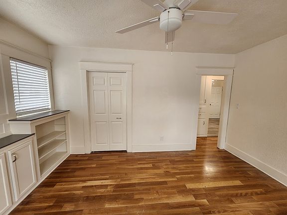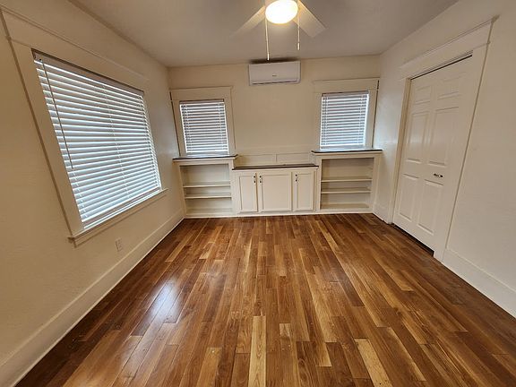 Includes: Inside laundry room with washer and electric dry hook ups, refrigerator, electric stove, mini split heating and air conditioning, nice size living room, real wood flooring in living room, hallway, and bedroom, LVP (luxury vinyl planking) in kitchen, bathroom, and laundry, side yard and front yard are fenced, new security doors front and back, new mini blinds throughout, fresh paint throughout, nice front porch with room for sitting, built in storage cabinets in living room, two clothes closets, linen closet, updated reliable electrical, ceiling fans throughout. motion sensor light on side yard, window awnings on front windows.