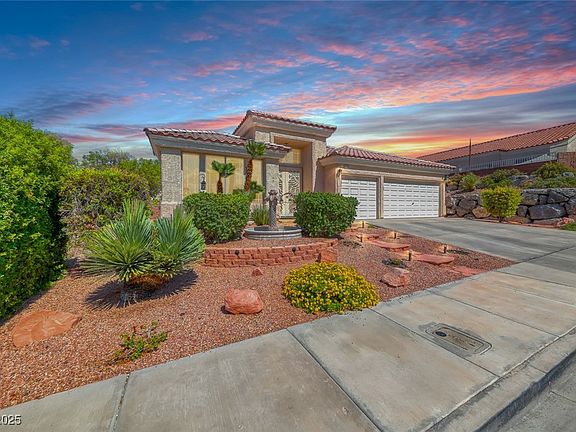 Welcome to your Henderson haven! Tucked just off Eastern Ave, this rare single-story gem with a spacious 3-car garage blends comfort, style & convenience—just minutes from premier shopping, dining, medical centers & located within some of Henderson’s most sought-after school districts. Enjoy dual primary suites on opposite ends, each with walk-in closets & separate tubs & showers—perfect for multi-gen living. Luxury vinyl plank flows through the main areas, with a formal dining room, front living room & cozy family room with gas fireplace & surround sound. The kitchen delights with a walk-in pantry, island with bar seating & breakfast nook. A beautiful storm gate on the front French doors lets you enjoy the breeze with peace of mind. You’ll love the laundry room w/ sink & cabinets, insulated garage doors, plus FULLY OWNED solar panels! Step into your secluded backyard with a covered patio, small pond & an above-ground spa with stone surround—ready for your upgrade. This one has it all!