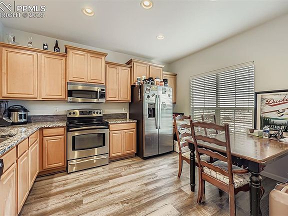 Beautiful townhome Located in the highly sought out community of Monument CO in Walters Commons subdivision with award winning D38 schools and minutes from Lewis Palmer High School. Newer LVP floors and carpet, the open floorplan main floor living area, with fireplace, gourmet kitchen with stainless steel appliances, custom backsplash and gorgeous granite countertops and 1/2 bath is an ideal for just relaxing or entertaining. Convenient access to expansive deck to enjoy the amazing CO views and weather. Upstairs, to your private primary suite with an updated attached 5-piece bath awaits (the walk-in closet is massive). Two guest bedrooms with spectacular views and an additional guest bathroom on this level. Laundry and storage on the entry level along with the enormous 2 car tandem attached garage facilitates endless possibilities: project car, fitness/yoga room, rec room or man cave. An easy commute to both Colorado Springs and/or Denver adds to the desirability.