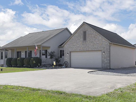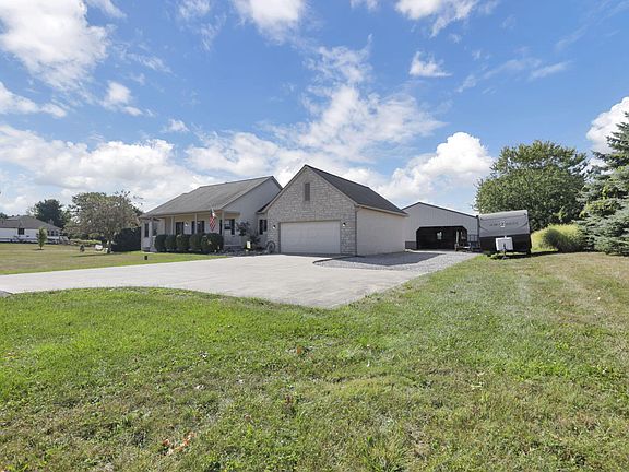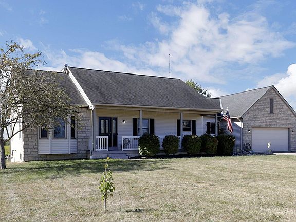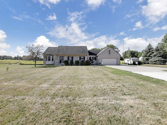 Welcome to this custom built ranch home set on 8.21 acres of rural land, featuring a 1,440 Sq ft pole barn. This property offers 3 bedrooms and 2 full bathrooms within 1,730 Sq ft, along with a 1,200 Sq ft finished basement. The open kitchen includes new granite countertops, while the first-floor laundry conveniently connects to the 3-car garage. Enjoy a cozy living room with a fireplace and access to a deck overlooking the secluded backyard. This house is wired for a whole house generator, equipped with a water softener, and includes various upgrades. It is conveniently located, while still offering a country setting.
