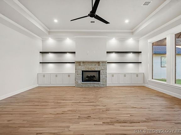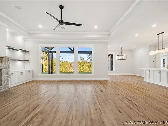 Brand New Eric Plan in desirable Jenks schools at Estates at Ritz Hollow. This home features 4 bedrooms, (2 up and 2 down), 3.5 baths, home office, game room, theater room and 3 car garage! The kitchen features stainless steel appliances, a built-in 66" Frigidaire XL refrigerator/freezer, and soft close custom cabinetry throughout. The primary suite opens to the laundry room. Many extras include: spray foam insulation, tankless hot water heater, full tile showers, energy efficient HVAC, and hardwood floors. Enjoy the walking trails and ponds in this exclusive gated community with easy access to dining, shopping and highways.