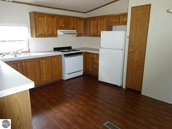 Clean & Livable fixer upper single wide with bright & open floor plan on nice 1+ acre country setting! Updated metal roof in 2008, 1.5-car detached garage (14'x 20'), 2 bdrms & 2 baths. Location on paved county maintained road w/ natural gas & TC schools. Approx 10 min to Chums Corners/ 15-20 min into TC. Can be purchased with only 1.2 acres for $54,900 package price. Might go FHA and/or VA with some modifications, but likely will require conventional mortgage and/or cash. Live in mobile & build future home back in the woods & then rent the mobile out or have an in-law suite to fall back on!