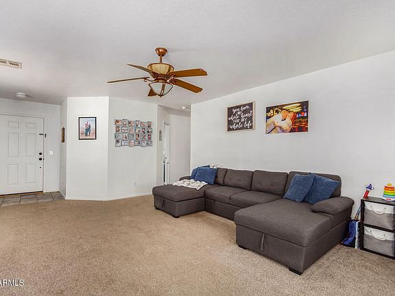 Home, sweet home! Check out this charming single-level property in the desirable Parkwood East! Providing 3 beds, 2 baths, a 2-car garage, and a low-maintenance landscape. Be greeted by a large living room offering a welcoming atmosphere! Natural light filled the interior, complemented by a designer palette and tile flooring w/plush carpet in all the right places. The spacious eat-in kitchen boasts black SS appliances, ample wood cabinetry, spacious counters, a center island, and sliding doors to the back. Primary bedroom includes a walk-in closet and a private bathroom for added comfort. The laundry room, just off the kitchen, provides shelving. Discover the backyard's artificial turf and a Gazebo with well-laid pavers for a great outdoor living space! Great Mesa location! Make it yours!