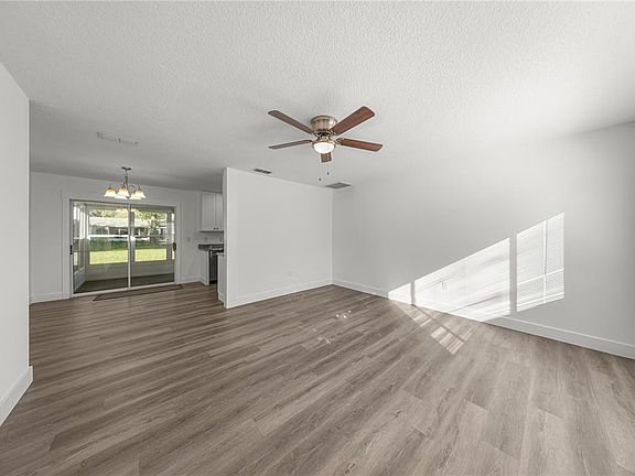 Step inside this fully remodeled 2-bedroom, 2-bathroom single-family home located in the 55+ gated community of Palm Cay in Ocala, Florida. The home features a newer roof, newer A/C system with updated ductwork, LVP flooring throughout, new lighting, new kitchen cabinets and appliances, remodeled bathrooms, new water heater, full gutters, and an enclosed back porch for additional living space. As you enter, you’re welcomed into a bright living room with updated flooring that continues seamlessly through the home. The space flows easily into the dining area, offering a comfortable layout for daily living or hosting guests. The kitchen has been fully upgraded with new cabinets, new stainless steel appliances, and modern finishes—designed for both functionality and style. The guest bathroom has been completely remodeled, and the nearby guest bedroom offers versatility for visitors, hobbies, or additional storage. The primary bedroom includes a widened doorway for easier access to the remodeled primary bathroom, which features a walk-in shower and updated finishes. Community amenities in Palm Cay include: a gated entrance, clubhouse, outdoor swimming pool, fitness facilities, tennis courts, bocce courts, shuffleboard, library, billiards, hobby rooms, and organized activities. Walking and biking opportunities are also available throughout the community. Conveniently located near shopping, medical providers, restaurants, and major SW Ocala conveniences, this fully updated home provides comfortable living with modern upgrades throughout.
