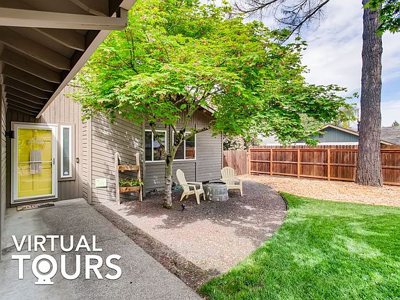 Virtual and private tours are available. Immaculate, move-in ready home with 3 bedrooms, 2 bathrooms, and 1,331 square feet in the heart of Tigard! Stand-out features include rich hardwood floors throughout the main living areas, vaulted ceiling with exposed wood beams in living room, remodeled gourmet kitchen, private loft guest bedroom, bathroom and huge backyard with garden and fruit trees! The cheerful front door leads inside to a fabulous step-down living area, complete with soaring cathedral ceilings with exposed beam accents, arched brick fireplace, wood beam accent columns, large windows that soak the space in natural light, and sliding glass door access to the backyard, making for easy indoor/outdoor entertaining! Remodeled eat-in kitchen is top of the line with stainless steel appliances, mosaic tile backsplash, granite countertops, and light wood cabinetry. All three bedrooms are well appointed and include plush carpet flooring and ample closet space. Guests can enjoy both space & privacy in the lofted third bedroom with a vaulted ceiling, great views, and window seat. Primary bedroom has its own en-suite bathroom with tile flooring and glass-enclosed walk-in shower. Enjoy endless hours outdoors in the fantastic backyard, complete with lush green lawn, privacy fence, gardening beds, large wood deck, covered patio, chicken coop, and fruit trees! Conveniently located just off the Route 217 & 99W interchange. Not far from great shopping and restaurants at Washington Square, and just down the street from Metzger Park. This charming urban oasis won't last long. Schedule a showing today!