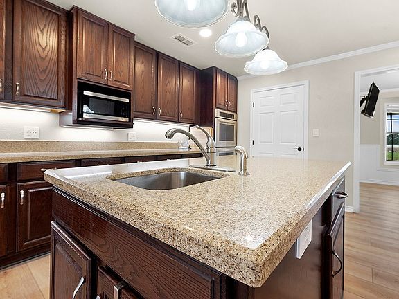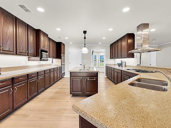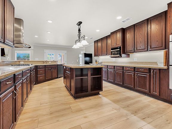 Perched on a hill with sweeping views of beautiful pastureland, this spacious 3BR/3BTH home offers nearly 21 acres complete with a pond. Inside, the great room features a cozy gas fireplace, and the massive kitchen boasts granite countertops, a Whirlpool 5-burner gas cooktop, under-cabinet lighting, and fresh flooring throughout. The huge master suite includes an oversized closet, while additional spaces like the office area and separate dining room provide plenty of flexibility. This home has also been converted to a complete smart home with all the necessary wiring in place for modern convenience. Updates include fresh paint, brand new flooring, and abundant storage in the attic and garage. Outdoors, enjoy a covered back patio, privacy fence for pets, cleach rock driveway, and a large exterior concrete slab with a separate electric pole hook-up. A 3-car garage and gutters complete this thoughtfully designed property. Refrigerator, freezer, 100" TV and 2 storage units convey.