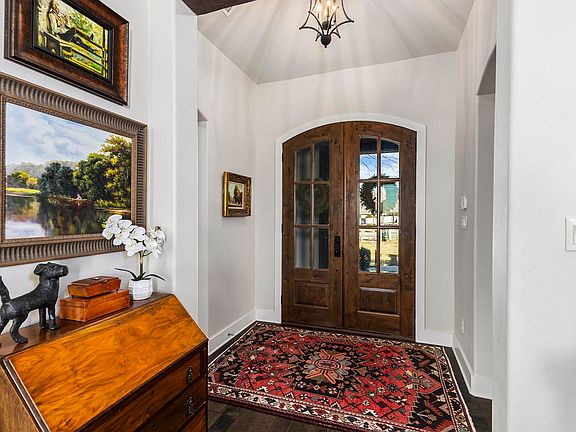 Step into this stunning custom-built home, a standout from the 2014 Parade of Homes, showcasing impeccable craftsmanship and modern styling. Nestled on a serene cul-de-sac in the highly coveted Foxwood subdivision, this 2,184 sq. ft. home offers the perfect blend of luxury and practicality. Featuring 4 spacious bedrooms—one of which can easily serve as a private study—along with 2 well-appointed bathrooms, this home exudes both comfort and versatility. The high ceilings, vaulted designs, intricate beam work, and custom finishes throughout create a truly unique space. The master suite offers a rare bonus—its own zoned air conditioning for ultimate comfort. Elegant wood floors grace the main living areas, while tile in the bathrooms and plush carpet in the bedrooms ensure a balance of durability and coziness. The kitchen comes fully equipped with a premium 60" refrigerator/freezer combo, perfect for entertaining. Outside, the expansive backyard is ideal for a pool and outdoor living space, offering endless opportunities for relaxation and fun. Located just five minutes from top-notch restaurants and Fresh Market, this home combines modern sophistication with the quiet charm of suburban living.