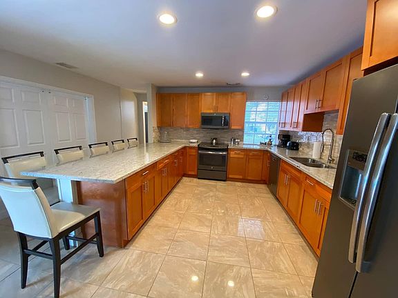 Finally Move In Ready Now! Big Home. Beautifully Updated Home, Relaxing Below Ground NEW Pool and Mature Oak Tree Surrounded By Palm Trees, Quiet Neighborhood, Garage, Granite Counter Tops With Real Wooden Cabinets, Brand New GE Slate Appliances, Formal High Ceiling Living Room, Entertainment Room, and Dining Area, Additional Office Or Garage, Tiled Throughout, Blocks From The New Baptist Hospital & Shopping Malls, Recreation Areas Nearby, Tennis Amenities, and Boat Amenities.