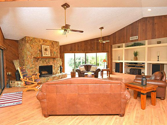 Discover this rare property on acreage ready for your horses. Country home situated on 2 acres and backing to a scenic lake. 3, possible 4 bedrooms, 2 bath, 2 car garage with an open floor plan. 4th bedroom has been converted to a den, but is an easy re-convert! Vaulted ceilings! 2 zone A/C! Cozy wood burning flagstone fireplace! Large covered porch with screened pool overlooks lake. Zoned for horses...2 stall barn, feed & tack rooms + 3 paddocks! Great location close to South Fork High School, shopping and easy access to I-95 for commuters! Perfect opportunity - peace & tranquility guaranteed.