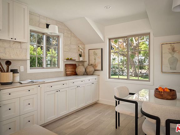 Completely transformed in 2025, this Westwood residence has been rebuilt as a turnkey sanctuary of light, style, and sophistication. Inside, a flowing open layout is framed by large windows, beamed ceilings, and white oak floors that infuse every space with warmth and airiness. The living room centers around a gas fireplace and opens effortlessly to the backyard through expansive sliding glass doors, creating the ideal setting for indoor/outdoor living. The adjoining kitchen is both beautiful and functional, with white shaker cabinetry, stone countertops, a generous seated island, and a walk-in pantry. Premium Viking appliances add convenience for the avid cook or entertainer, while the window-lined dining area offers a sunlit setting for casual meals or lively gatherings. The serene primary suite provides a private retreat with a walk-in closet and a spa-like bathroom featuring dual vanities and a glass-enclosed shower adorned with designer tile. Down the hall are three additional bedrooms, one suited as a home office, and two stylish bathrooms. Outside, the fully fenced backyard invites long afternoons in the California sunshine. Dine al fresco on the brick patio, unwind on the lawn, and enjoy the ease of a custom home that's been thoughtfully crafted for modern living. With a new pull-through driveway, dedicated laundry area, and all-new systems and finishes, every detail has been designed for comfort and peace of mind. Set on a desirable corner lot just moments from Brentwood Village, The Getty, and the boutiques and dining along San Vicente Boulevard, this home captures the essence of refined Westside living.