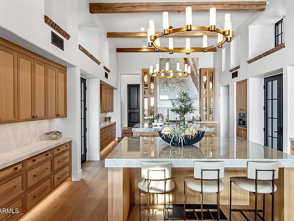 Modern Luxury with Breathtaking Views in Silverleaf's Upper Canyon. Nestled into the mountainside on an ultra-private 8+ acre cul-de-sac lot, this meticulously reimagined estate in the prestigious Upper Canyon of Silverleaf is a true masterpiece of modern luxury. Boasting 9,042 square feet of exquisite living space, this residence seamlessly blends sophisticated design with Arizona's signature indoor-outdoor lifestyle. Offering sweeping panoramic views of twinkling city lights, dramatic sunsets, and the lush Silverleaf golf course. Designed for both grand entertaining and intimate living, the estate features five ensuite bedrooms, including a primary suite on the main level with a private balcony framing breathtaking vistas. The boutique-style custom closets complement the spa-inspired primary bath, adorned with custom-lit quartzite countertops and exquisite designer finishes in addition to two water closets.