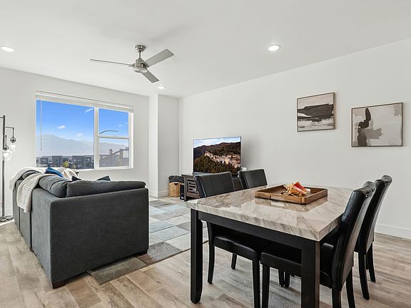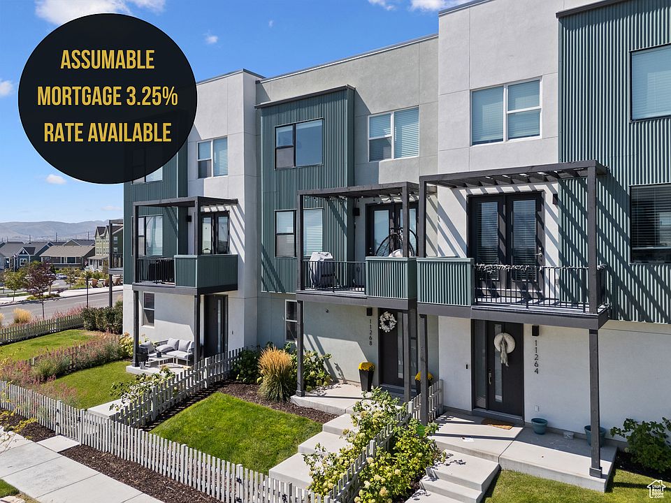 ASSUMABLE LOAN AT 3.25% Turn-key option with furniture & kayaks available! Qualified buyers save significantly vs current rates. Daybreak living at its best-mountain views from every floor in Highland Park Village. Premium upgrades include Nest smart-home tech, Google devices, water softener, Blink security, LG WiFi, WashTower, spa-style bidets, 9-ft ceilings. Garage has dual EV chargers, Tesla cables, kayak mounts. Custom balcony lighting. Steps from Biscott's, lakeside trails, pickleball, SoDa Row, Downtown Daybreak, TRAX. Furniture & kayaks optional. Assumption subject to lender approval - call for details!