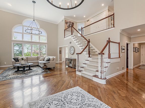 Custom built brick/stone to grade home in Triple Crown Country Club's prestigious Count Fleet Meadows! Boasting over 5300 sq ft of finished living space, this home is sure to impress with 4 bedrooms and 3 full/2 half bathrooms. Stunning hardwood flooring spanning the first floor highlights the open floorplan, made for entertainment with 18' ceilings in the entryway and great room with fireplace. First floor owner's suite features ensuite bathroom and walk in closet. Large kitchen features custom cabinetry, granite countertops, and tile backsplash with eat in area and walkout to AMAZING covered living area/stamped concrete patio. Finished lower level boasts walkout, an ample amount of natural light, wet bar with billiards area, stone fireplace, private office, walk-up to garage, and an additional garage door with entry into storage room. Three car garage at driveway with plenty of parking. Exceptional millwork throughout with 5'' baseboard, custom door/window casing, and crown moulding. Schedule your private showing today!