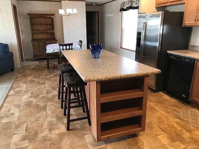 Great find in beautiful, tranquil countryside of Lebanon, IL! Where can you get a new 4 Bed, 2 Bath manufactured home with all new appliances, at this price?! Sitting on two large lots, the possibilities for your personal landscape design and property amenities are unlimited. Great for first time home buyer, small family or someone looking for a roomy one level home in a small country neighborhood. Lovely, open living area is perfect for entertaining and gatherings. Tasteful, neutral décor; beautiful kitchen cabinets, countertops, stainless steel/black appliances and large island with counter height seating. Bedrooms are roomy; three have walk in closets; ample storage throughout, large walk in pantry off the hall; and a laundry pass through in Master Bedroom are some desirable amenities. Master Bedroom has his and her walk in closets. This home works for just about anyone.