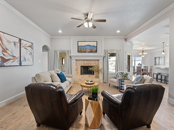 Welcome Home to Shallowater ISD! Step into this beautifully maintained 3-bedroom, 2.5-bath gem, where every detail has been thoughtfully cared for—new roof (2021), new fence, new sewer line, and fresh carpet throughout. The chef's dream kitchen is a showstopper, featuring updated appliances, a new microwave, a new disposal, a spacious island, a coffee bar, and a generous pantry—all designed with smart storage solutions to make cooking a joy. Gather in the spacious living room with a cozy gas-log fireplace, or retreat to the luxurious primary suite with double vanities, a soaking tub, a separate shower, and a walk-in closet with custom built-ins. Step outside to an entertainer's paradise—a large covered patio with a pergola, dual ceiling fans, and lush, beautifully landscaped surroundings. Plus, enjoy the storage building with shelving for all your extras! This home truly has it all—move-in ready and waiting for you!
