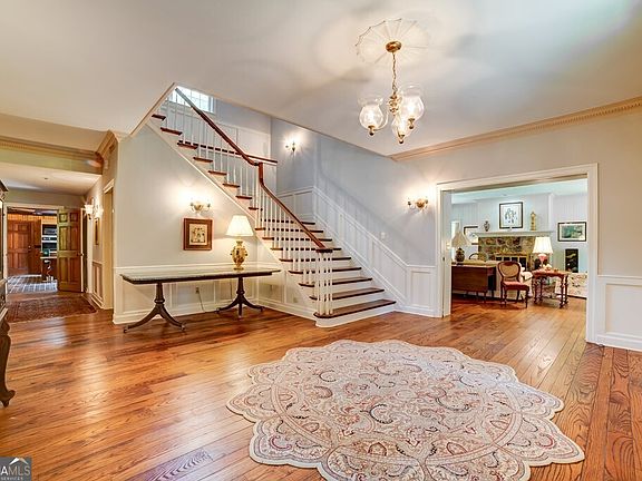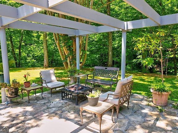 Private North GA Mountain Estate on nearly 8 acres, surrounded by USFS land & bordered by a creek, offers a serene retreat. This estate boasts a unique & private setting, including a 2 story stone-frame, 3 bay garage/workshop & additional storage buildings. The exquisite residence spans over 5,000 sq ft, featuring 3 bedrooms & 3.5 baths, w/ potential for additional finished space in the basement. Upon entering the grand foyer, admire the beautiful wood staircase leading to the 2nd level. The main level invites you to unwind in a large gathering room w/ a wood-burning fireplace, tongue & groove fir panels, dentIl moulding & French doors that open to a stone patio beside the creek. The den, adorned w/ chair rail & native wormy chestnut panels timbered from the property, also features built-in bookcases. The dining room w/fireplace, chair rails, built-in cabinets, & intricate dentil moulding on the ceiling. Culinary enthusiasts will appreciate the kitchen's custom Mexican brick floor, wooden cross beams, tongue and groove ceilings, butler's pantry, & dining area w/ a wood-burning fireplace. Notably, bricks used in the fireplace were sourced from a historic hotel in NC. An elegantly designed powder room w/ Belgian oak cabinet & high-mounted water closet commode completes the main level. Upstairs, a spacious loft currently serves as a library w/ custom bookshelves. The upper level also includes 2 expansive master suites w/ ample closets & private bathrooms. The partially finished basement adds a 3rd bedroom & full bath. This home showcases upgrades such as Tennessee stonework, 18-inch basement walls, 3/4 oak floors, central vacuum, laundry chute, soundproofed interior walls, Pella windows, extensive woodwork, heated floors, & an impressive 8-car garage. Additional amenities include a safety cellar & a turn-of-the-century wormy chestnut log shed for storage. Adjacent 15 acres are available for acquisition, providing additional privacy.