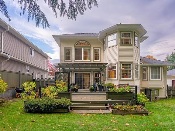 Welcome to this beautifully maintained 4-bedroom, 3-bathroom home. The main level features a bright kitchen with a central island and cozy eating nook, enjoy the gas fireplace in the comfortable family room, a formal dining area, and an inviting living room with vaulted ceilings soaring over 14 feet. The primary suite is a true retreat with 11-foot ceilings, a charming seating area, a deluxe ensuite, and a walk-in closet. One of the bedrooms is set up as an office with built in desks and shelving. Practical spaces include a laundry room with built-in storage and sink, and a double garage with a 220-volt plug. Equipped with a furnace and heat pump for year-round comfort. A large basement offers convenient additional storage. Outdoors, you’ll enjoy a tidy yard with a charming garden shed, a covered deck perfect for relaxing, and paved RV parking along the side. Backing onto a creek and Twin Falls, this property combines comfort, functionality and natural beauty in one exceptional package