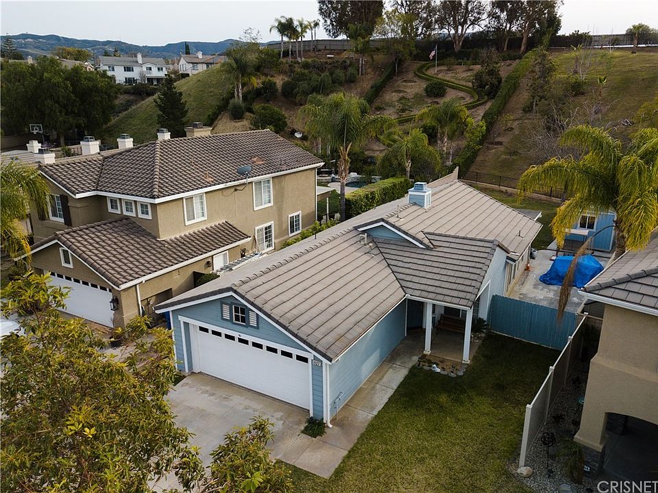 This beautiful home is nestled on a quiet street in Simi Valley's Greenbriar tract, and it has a great view of the surrounding rolling hills. Here are just a few of its many other features: You'll step into a flowing 1,081 square foot open concept floor plan with high ceilings throughout. Spacious living room with cozy fireplace and built-in media alcove. The family's cook will appreciate the kitchen's abundant cabinets, ample tile counters, adjoining dining area, and direct patio access. 3 bedrooms; Master suite has a walk-in closet and private bathroom. A total of 2 bathrooms. Functionally located laundry. Durable tile roof. Central heat & air. You're going to enjoy the large backyard's covered patio, mature shade tree, and the 3 very handy storage shed 2 car direct access garage. All of this sits on a gigantic 18,590 square foot lot.