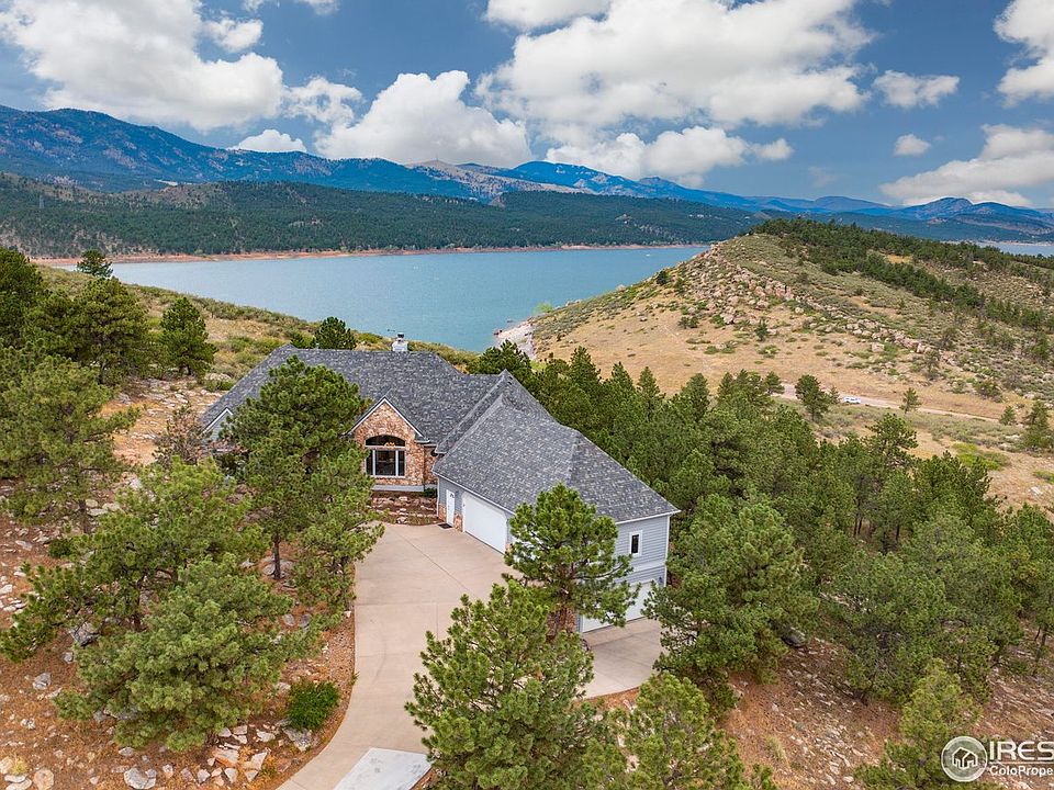 Enjoy year-round living with amazing views in this custom-built home in the foothills outside Berthoud! Property overlooks Carter Lake with its many recreational opportunities such as kayaking, fishing, hiking, biking and more! Enter into 13-foot vaulted ceilings, hardwood floors, arches, skylights, and an open floorplan. The finished walk-out basement includes a rec room with second kitchen perfect for entertaining. Home includes over 2000 square feet of heated garage space with both an 3 car upper and 2 car lower. There's additional features like a Honeywell backup generator, air compressor that feeds air to both garages, whole house vacuum, water softener, water filtration system, security system and more! Only 15 minutes to Downtown Berthoud, 45 minutes to Boulder, and an hour from DIA. Home has even been pre-inspected and includes a First American "Eagle Premier" Home Warranty! Property is behind a private locked gate so no drive-bys please! Schedule your showing today!