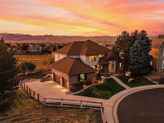 Once in decade opportunity in coveted Mansion Hills! Panoramic big mountain views from all three levels. Sitting on almost half an acre of mature landscaped grounds, this prime corner walk-out lot on cul-de-sac backs to open space on two sides. Over 5,600 finished square feet of tastefully renovated living space, including 5 bedrooms, 6 bathrooms, all new windows and HVAC systems (2016), and 2 new water heaters (2024). Light-filled and open floorplan with extensive red oak flooring throughout the first and second floors. Main floor features a large formal dining area, remodeled laundry and powder rooms, sophisticated den with wood-beamed cathedral ceiling, custom built-ins, wainscoting, and floor-to-ceiling stone fireplace. Chef's kitchen with large island, 5-burner gas range, double ovens, dual dishwashers, sprawling granite countertops, and an elegant wet-bar. Airy great room with vaulted ceiling, majestic picture windows, stone fireplace and custom shelving. Main floor primary suite with sitting room and private access to the newly replaced and expansive deck. Fully remodeled spa-like primary bath with free-standing tub, double-sided fireplace, exquisite Layalite quartz countertops, marble floors, and cappuccino finished cherrywood cabinetry. Upstairs you'll find 2 bedrooms with jack-n-jill bath and additional bedroom with ensuite. Enjoy a great book and mountain views from the relaxing loft overlooking the first floor. Walk-out basement with stylish LVP flooring throughout, 5th bedroom with newer carpet, full bath, multiple areas for entertaining and gaming, plus a large unfinished section for current storage or future possibilities. Easy basement access to the flat, park-like backyard, with gazebo and lush landscaping. Private covered patio with sleek cedar-lined ceiling and Trex Rain Escape system. Steps away from the Highlands Ranch Mansion and designated open space; this home shows true pride of ownership inside and out! See more at 1127JesseCt.com