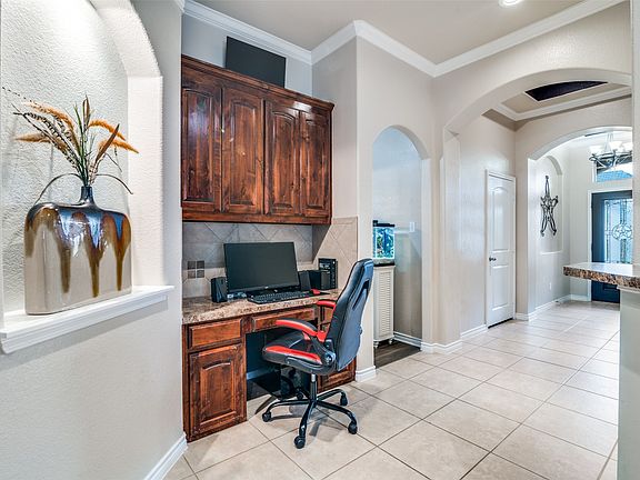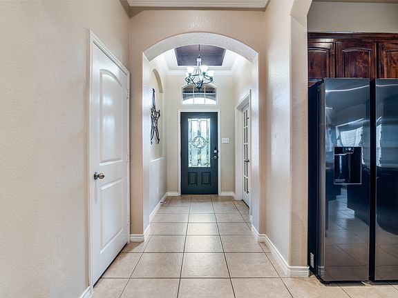Welcome home to this beautifully maintained 3-bedroom, 2-bath home nestled in the coveted Travis Ranch community. This modern residence offers open concept living with plenty of space for gathering and entertaining. The home features a lovely custom stone fireplace, luxury vinyl flooring, raised garden beds, and unique architectural details throughout, including both arches and niches. Home boasts a bright and airy flex room that could serve as a dedicated office, dining, or additional bedroom space. This residence has a split bedroom floorplan for privacy and master is complete with a lavish soaking tub, double sinks, sizeable shower, and a spacious walk-in closet. As an added bonus, the garage is oversized with epoxy floors and is complete with a mini-split unit to keep things warm or cool. Garage also features a 220 plug for a welder and has two twenty-amp outlets for your convenience. Other amenities include french drains, gutters, solar screens, and wiring for surround sound. This quiet sought after neighborhood has numerous parks and pools and is located just minutes away from Lake Ray Hubbard where you can dine, play, and relax. As an added benefit, the home is serviced by either Rockwall Independent School or Forney Independent School Districts.