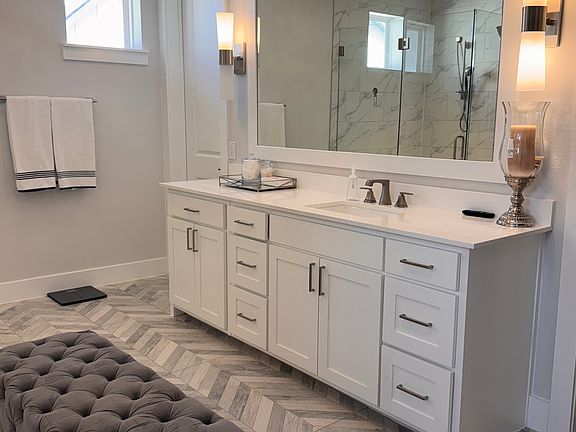 The expansive master bedroom on the third floor features his-and-hers walk-in closets and a luxurious en-suite bath with a double vanity and oversized walk-in shower. An open-concept kitchen with a large island flows seamlessly into the living area, creating an inviting space for dining and entertaining.