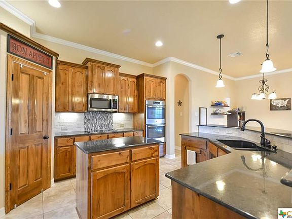 This gorgeous Carothers home features wood tile flooring, custom cabinets, granite countertops, stone kitchen island, double ovens, walk-in pantry, multi-level trey ceilings in both the master bedroom and living area. The laundry/utility room is so spacious and walks out to a 3-car garage. You have two doorways to the large backyard with a covered patio in both the garage and off the living area. This 4 bedroom, 2.5 bath home also features a study/flex room, a formal dining area and breakfast area. A MUST-SEE!! Home Sweet Home