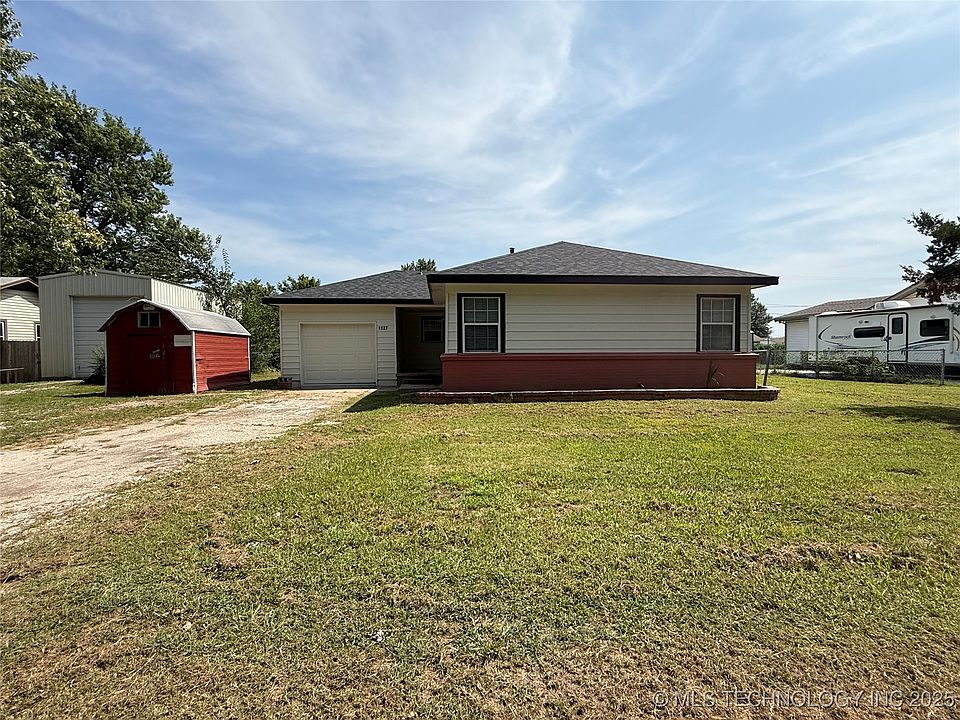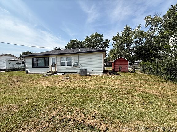 Check out this cute and totally remodeled home in 2024/2025 with 3 bedrooms, 1 bathroom, 1 car-garage on a large city lot in Skiatook. The home features a brand new roof, brand new garage concrete floor, brand new exterior and interior paint throughout the house, brand new HVAC units, brand new water heater, brand new kitchen sink, brand new kitchen countertop, brand new kitchen flooring, new kitchen cabinet paints, brand new kitchen light fixtures, brand new carpet throughout whole house, brand new bathroom floor, brand new bathroom toilet tank, brand new bathroom vanity, brand new bathroom light fixture, brand new back door and storm door, installed new back door stairs, one brand new bedroom door, one brand new window, , brand new window interior and exterior trims, new window screens, brand new window blinds, and a new porch light fixture. There is a 6x10 shed. The property is in a nice neighborhood, on a dead-end street, and close to the Osage Prairie Trail. Also, four huge trees were cut down to prevent damage to the roof. The seller is related to the listing agent. The home is ready to move in! A must-see property!