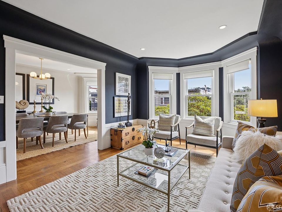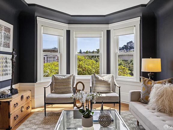 Spectacular remodeled, top floor condo located on a tranquil, tree-lined street just steps to the lively Cole St corridor. This light filled home has the perfect blend of modern conveniences & incredible Edwardian charm. Expansive living room w/tray ceiling detail, dramatic brick fireplace & bay window. Spacious open dining room, also with tray ceiling detail, leads directly to the thoughtfully remodeled, designer kitchen with stone countertops, built-in desk + Sub-Zero fridge, gas range & breakfast bar! Private living quarters are ideally located at the back of the unit & include a stunning primary suite with large walk-in closet and remodeled marble bath w/double sink vanity, heated floors, Porcelanosa tile & glass enclosed shower stall. The spacious guest bedroom boasts an oversized closet and is served by the hall bath w/soaking tub and heated tile floors. Inviting, level shared yard with patio, firepit & BBQ, ideal for entertaining. Recent Unit upgrades: 9 newer windows, newer washer/dryer & stove, monkeybrains internet & updated security system. HOA replaced roof (Aug 2025) repaired exterior stairs and painted most of the building exterior. One car garage parking + in-unit laundry room. Enjoy the best of Cole Street cafes, shops and nearby Golden Gate Park.