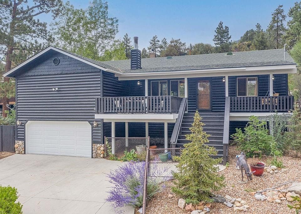 It's simply magical! This beautiful log-style, 4 bedroom, single-story home is near the forest, in Whispering Forest! A modern mountain home, situated in one of Big Bear's most desirable south-facing, forest-backing neighborhood, with mountain and ski-slope views, offering a great experience for full-time, vacation, or income-producing investors! Within walking distance to the forest and many great attractions including great dining, boardwalk to lake, Big Bear Snow Play and Speedway, and year-round events at the Convention Center such as Oktoberfest, Farmer's Market, Oktoberfest and Wyatt's. Featuring vaulted wood ceilings, an open great room, dual pane windows and doors that open up to the spacious and covered back patio, low-maintenance flooring, lots of counter space and under-lit cabinetry. There's 4 large bedrooms and 2 bathrooms, including a master suite with a jetted bathtub and its own back patio access, plus a huge bonus room that presents many options down the hall before heading down to the garage. Extra benefits include a fully fenced yard with mature trees and low-maintenance landscape, parking space, and extra storage area in crawl space. Simply a must-see!
