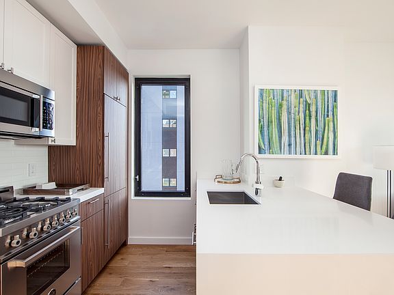 Each tailored home features natural oak flooring, custom LED lighting, expansive windows and fob based access control. Each kitchen is outfitted with stone counters and Bertazzoni gas ranges (cooking gas is included in rent). The kitchens also feature built in refrigerators and dish washers. Baths feature Duravit deep soaking tubs and the finest Hansgohe plumbing fixtures. Oversized windows make for bright and airy living spaces, with additional outdoor space available on the roof level. To ensure maximum comfort for residents, each room has individual climate control including the ability to seamlessly choose heat or air conditioning 365 days a year.