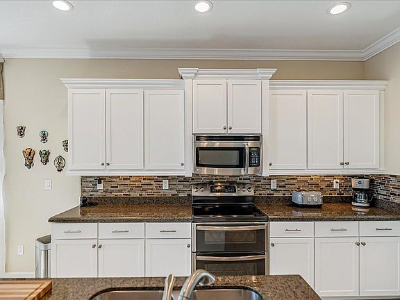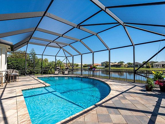 Stunning Former Model Home with Premium Upgrades! This impeccably maintained 2-bedroom + Den/office, 2-bathroom, 2 car garage home showcases high-end designer touches, including coastal shiplap walls, elegant tray ceilings, and crown molding. The split floor plan offers an open-concept layout, featuring a spacious kitchen with a generous island--perfect for entertaining!Step outside to your covered, screened-in patio and take in breathtaking views of the gorgeous pool and serene lake. Enjoy hurricane impact windows, fenced-in yard, located just steps from the resort-style clubhouse, this home is also minutes from shopping, dining, walking trails, and easy access to I-95. Wake up to stunning sunrises over the lake and experience the ultimate Florida lifestyle.