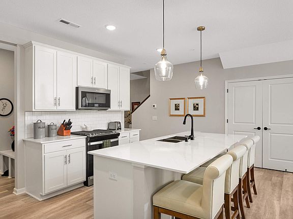 Soaked in natural light and designed for effortless living, this Ashton-plan townhome delivers the style and space you've been hunting for. The main level pairs an airy open layout with a sunny bonus room-ideal for a home office, playroom, or morning-coffee retreat. Also on the main floor you will find a bright white kitchen with quartz countertops, stainless steel appliances, and high-end-fixtures throughout. Upstairs, the private owner's suite feels like it's own wing with a generous walk-in closet se t apart from the en-suite bath. Two additional bedrooms share a dual-sink bathroom, while a full-size laundry room keeps chores easy and out of sight. Part of top-rated District 834 and just steps from neighborhood parks, shops, and trails.