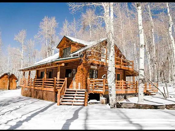 This well-cared for log cabin is tucked away in the thick Aspen & Pine trees and makes a wonderful mountain home. Enjoy peace and quiet and great BBQ's on the large, covered wrap around decks while enjoying the wildlife that visits.