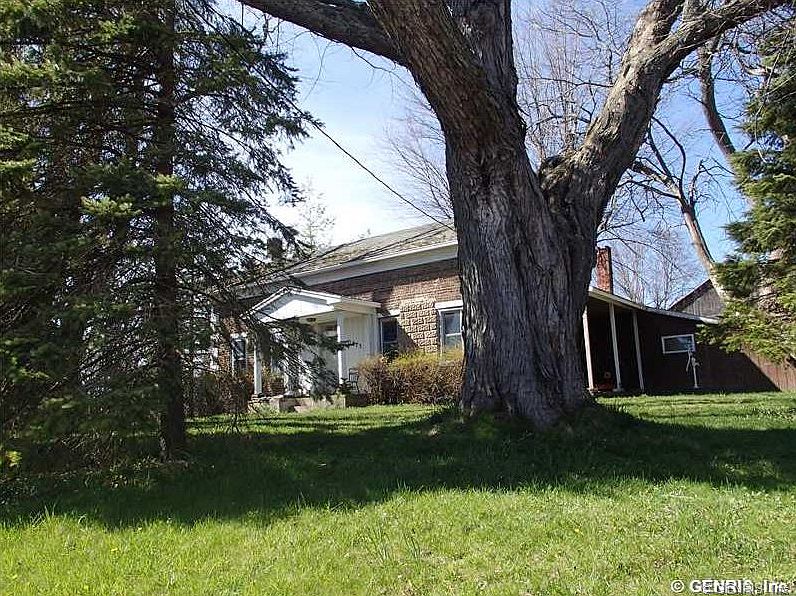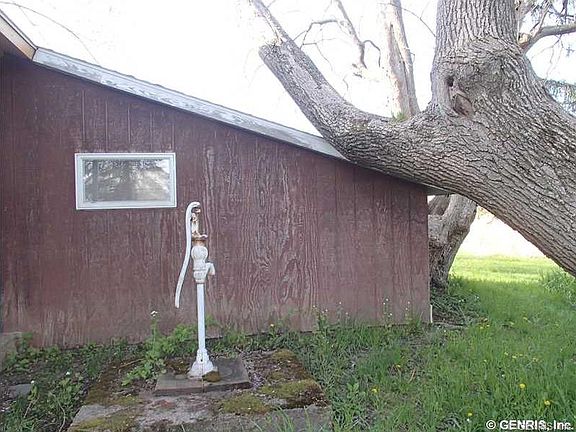 Charming country ambiance. Historic cobblestone with two barns, stocked pond, two full RV hookup sites. Water and electric available at garden area and throughout the yard. Modern cherry kitchen. Space for a shop in the barn. Area laid out for tennis courts near the pond. Partially wooded lot. If the buyer purchases the property, "as is" then the price can be adjusted for roof replacement, etc.