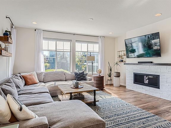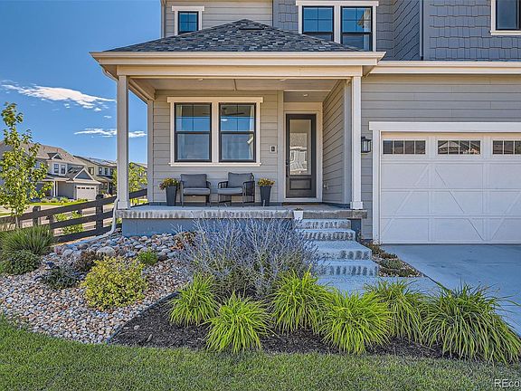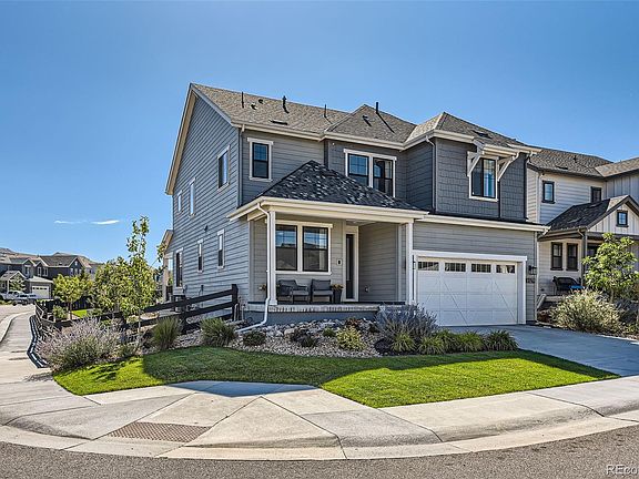 Why wait for new when this spectacular home is ready now?!  Located on a corner lot and featuring one of the largest backyards, this gorgeous 2-story in Solstice features 4 bedrooms (3 upper / 1 main - could be an office), 4 baths, living room, open kitchen, dining room, loft/family room, upper laundry, unfinished basement and 2 car garage.  Meticulously maintained - Pride of ownership shines throughout. Beautiful upgrades and finishes including an upgraded kitchen package (appliances, flooring, cabinetry), designer Cosmo fireplace in the great room, barn door at the primary bath, designer electrical and lighting package and covered patio.  Additional upgrades include backyard landscaping ($100,000) - extended concrete patio, fire pit, built-in outdoor grill and hot tub; Window treatments in the great and dining rooms, electronic remote control patio slider, primary bedroom & bathroom and more.    The many windows allow the natural light to cascade in - bright and cheerful.  Finish the basement for even more living space.  Relax or entertain after a long day in the beautifully landscaped rear yard. Hot tub stays with home. The highly sought after community of Solstice is surrounded by Chatfield State Park on 3 sides and acreage sites on the 4th. Close to dining, shopping, entertainment and other amenities.  Don't miss your opportunity.  Welcome Home!