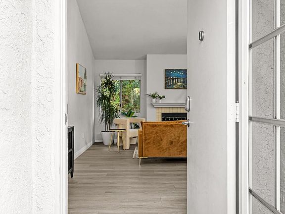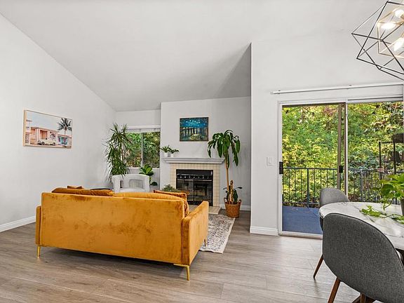 Discover this captivating upper-level corner-unit condo in the desirable community of The Falls. This 2-bedroom, 2-bathroom home blends modern comforts with charm. It is spacious and bright, with a thoughtful design. As a corner unit, you get added privacy. Enjoy views of lush greenery, including bushes and trees. They create a peaceful, natural setting outside your balcony. It's perfect for quiet mornings or relaxing evenings. The high ceilings and natural light create an airy feel. The cozy fireplace invites you to unwind. The kitchen has sleek, stainless steel appliances and a breakfast bar. It also has a quaint nook, perfect for casual meals and entertaining. You'll also appreciate the laundry closet, carport parking, and extra storage. Amenities include a pool, spa, tennis courts, and walking paths. This home is near schools, popular restaurants, and major freeways. It offers both tranquility and easy access. The $337/month HOA fee includes water. It offers great value and hassle-free living.