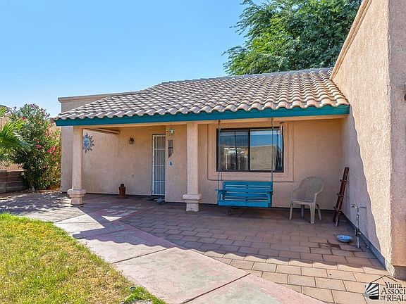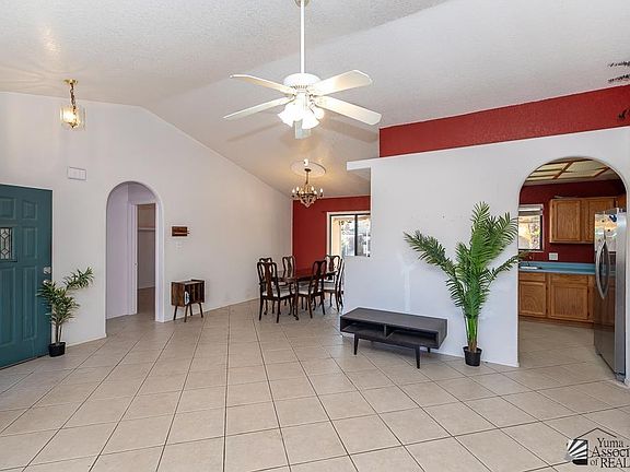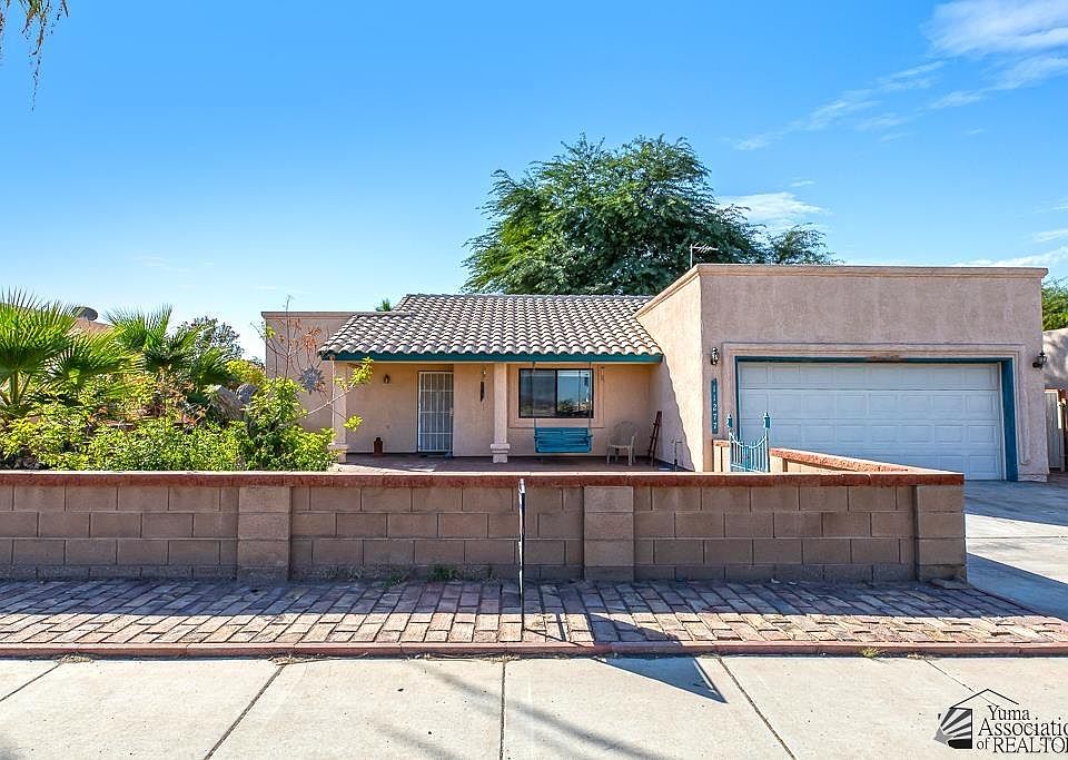 2 bedroom, 2 bath home in the Villas Subdivision with great potential. This home offers a spacious living area with vaulted ceilings and tile flooring throughout. The kitchen provides ample cabinet and counter space with a functional layout. The backyard is fully bricked, features mature palms, and offers plenty of room to personalize. Double gates allow easy access for desert toys, trailers, or additional parking. Situated on a generous lot with a fully fenced front courtyard and a 2-car garage.