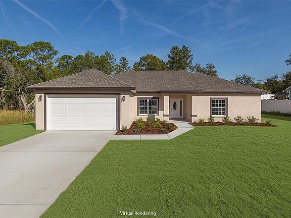 One or more photo(s) has been virtually staged. PRICED TO SELL!!!!!!! Royal Highlands Weeki Wachee location right off of SR-50. New Construction move in ready. 4 bedroom 2 bath home with wood floors throughout this new home.This builder did not miss anything with luxury and detail. Split floor plan with a very private primary bedroom.The bathroom is very elegant with beautiful tile, dual sinks and lighted mirrors. Huge walk-in closet. Grand living room with open concept leading to the guest rooms, dining room and kitchen. Samsung appliances with quarts counter tops and bar seating.The other 3 bedrooms are on the south side of the house with beautiful natural lighting. Laundry room has easy access from the primary and kitchen area. Backyard is absolutely spacious with wooded area. Room for a Pool,Children playing, dogs, gardening and of course the new trend of having chickens. No HOA,CDD, Deed Restrictions and NO FLOOD ZONE. Almost a 1/2 Acre.Samsung Appliances. Quartz countertops.