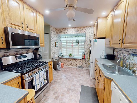 This well-maintained 3 bed, 2.5 bath town house features a spacious primary bedroom with attached primary bathroom, kitchen with large sitting bay window flowing into large dining room, and living room featuring a fireplace that anchors the home. The living room has sliding glass door that leads to the huge covered outdoor deck - complete with ceiling fans and plenty of room for your patio furniture - ideal for relaxing or entertaining rain or shine. The attached garage provides secure parking and storage, leading into a finished basement with family room and laundry room. The HOA is $165/month and makes upkeep a breeze.