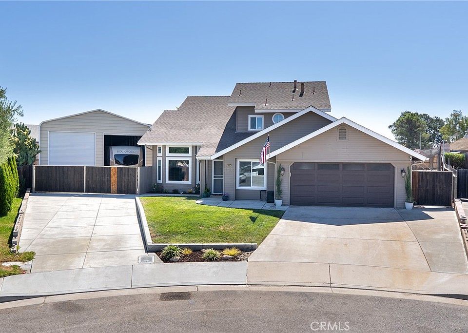 Tucked at the end of a cul-de-sac on a 1/3-acre lot, this upgraded 4-bedroom, 3-bath home offers 1,900 sq. ft. of living space near the Paso Robles Golf Course and Almond Acres Charter Academy. The interior features LVP flooring throughout, neutral paint colors, and Milgard Trinsic Series windows that bring in natural light. The living areas include a cozy family room with vaulted ceilings, plus a bedroom and ¾ bath on the lower level. The kitchen is appointed with custom concrete counters, a tile backsplash, and stainless-steel appliances. Upstairs, the spacious primary suite offers vaulted ceilings, a walk-in closet, soaking tub, updated vanity, and access to a new private deck, while two guest bedrooms and a shared bath complete the upper floor. Outside, the expansive yard offers something for everyone with a built-in firepit, batting cage, raised garden beds, and plenty of room for a pool. A 37’ x 27’ RV/boat garage with hookups and dual roll-up doors provides easy access and storage, complemented by a tool shed on slab. Energy efficiency comes from a 5.5kW owned solar system with individual panel inverters, maximizing performance and helping to keep utility costs low year-round. The seller is also offering a $8,200 closing cost credit, giving buyers added flexibility. Don’t miss this opportunity to own a versatile Paso Robles property with space, upgrades, and functionality - schedule your showing today.